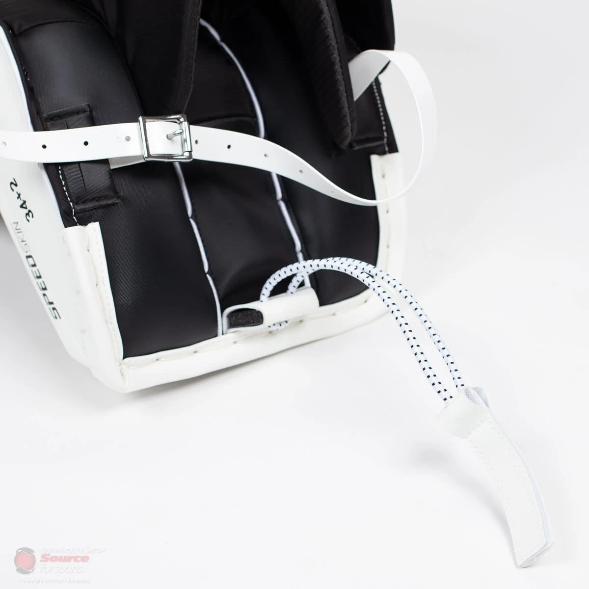 CCM introduces their quick motion strap system to the E-flex line. This strapping system finally eliminates the buckles that CCM has been using, and makes the pad a more modern by having all velcro straps, 2 along the calf and one around the knee, encouraging you to get dressed and undressed faster than ever before. As for the toe ties, CCM has brought a bungee cord velcro system, similar to infamous HAL straps, giving a more adaptive feel while playing while also being quick, secure and easy to do up.