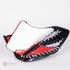 The CCM Extreme Flex E5.5 Youth Goalie Blocker is a stock only color offering, available in a the following colorways; Chicago, Detroit, Toronto, All White, White / Black, and White / Navy. The E5.5 Blocker is available in Regular and Full Right hands.