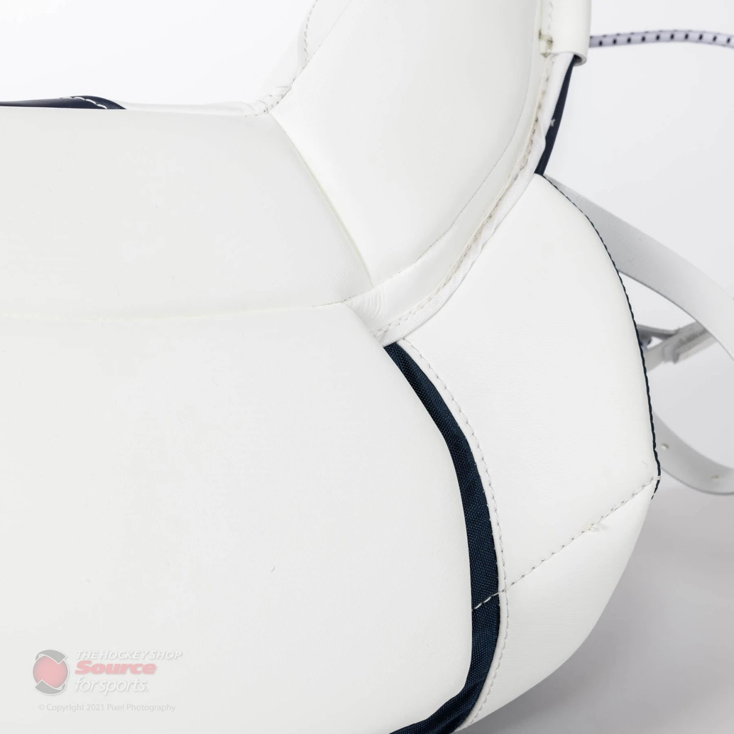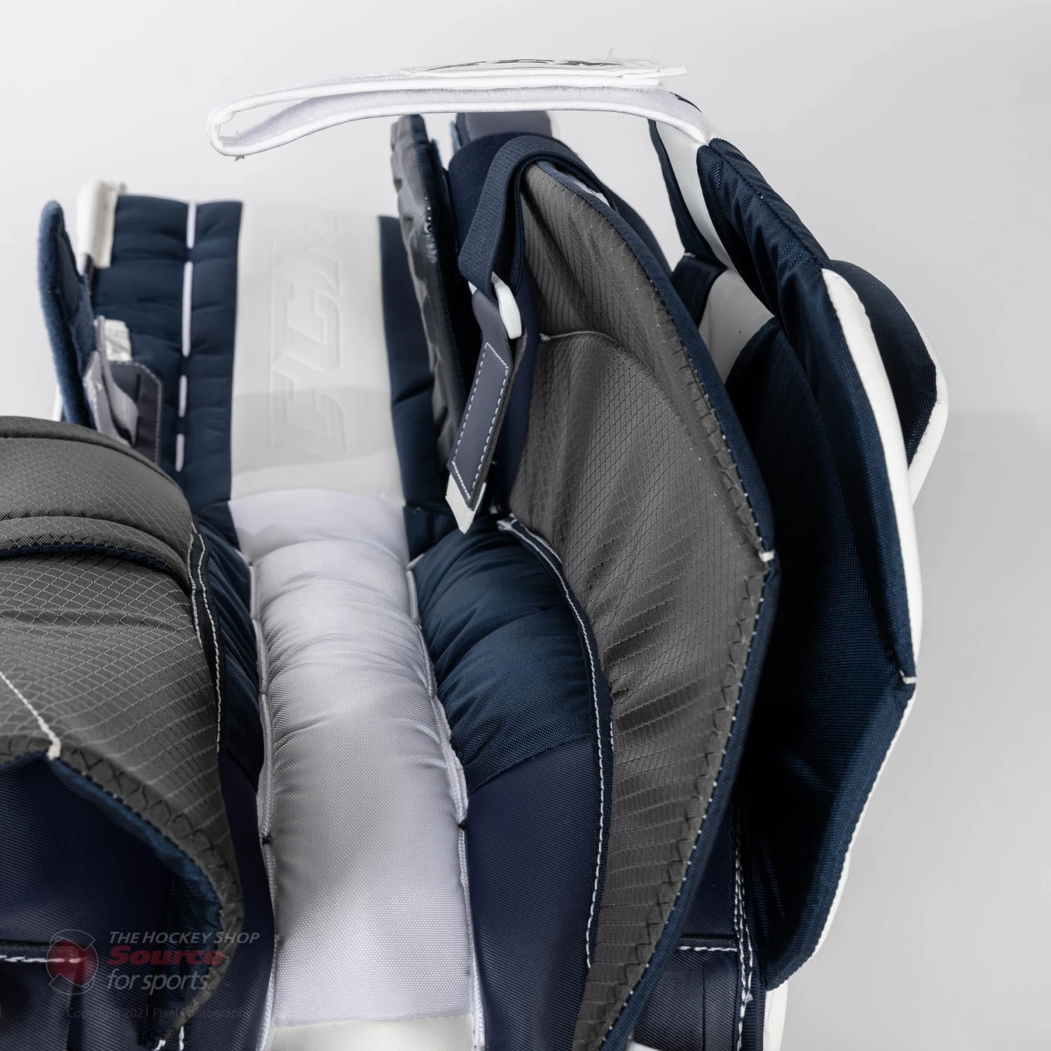 CCM uses recessed foam with a removable knee cradle wrap to allow customizability and comfort. This deep knee cradle is designed to help close the five hole and prevent you from falling off the knee stack, while still having unrestricted mobility.