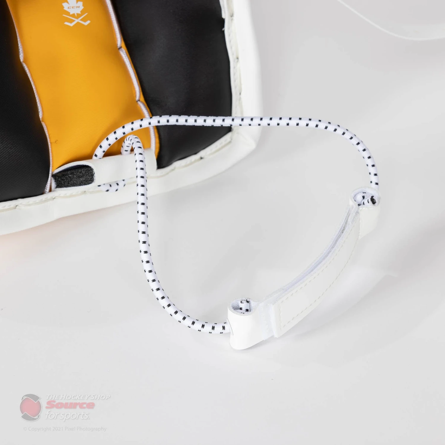 CCM uses recessed foam with a removable knee cradle wrap to allow customizability and comfort. This deep knee cradle is designed to help close the five hole and prevent you from falling off the knee stack, while still having unrestricted mobility.