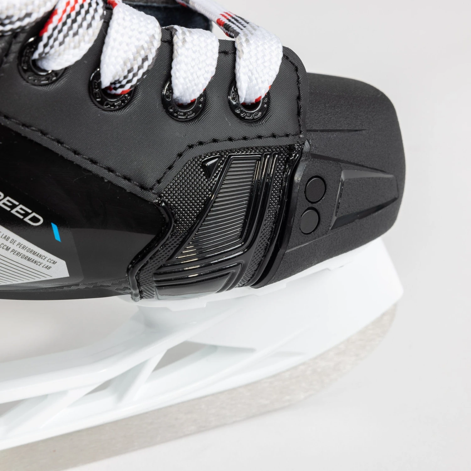 The skate uses a metatomic TriTech 7mm tongue that contours snugly and comfortably around the metatarsal area of your foot for solid protection. Metatomic tongues are a specific type of skate tongue design that focuses on providing enhanced forward flexion and increased range of motion for players. This tongue is also designed with lace bite protection.