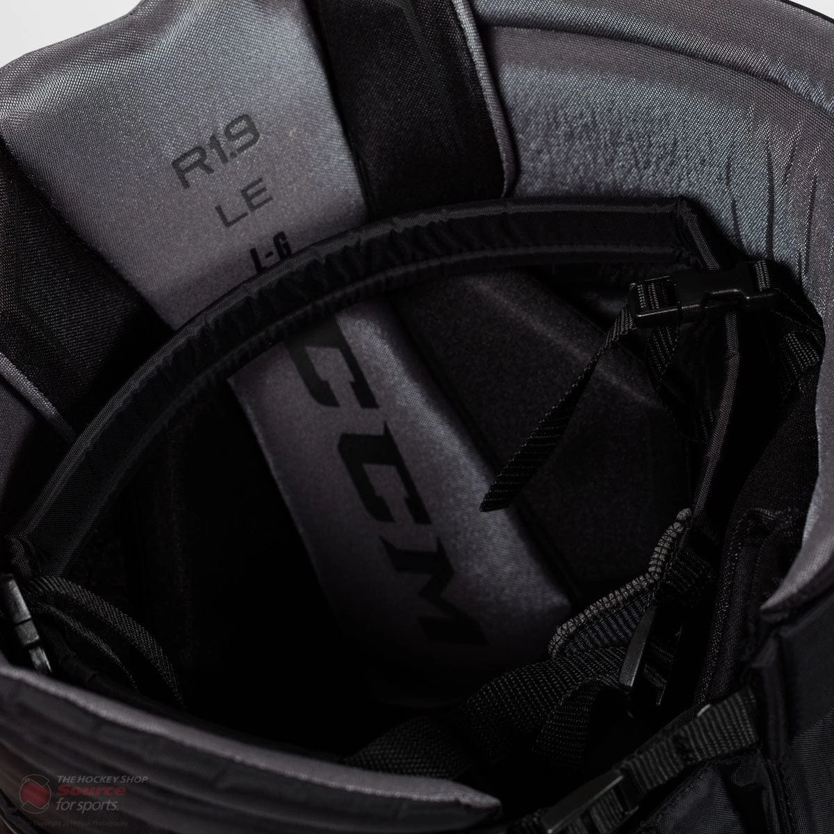 The CCM R1.9 LE goal pant features the segmented PE Foam to help disperse impact away from where the puck hits your body. This is coupled with molded plastic and PE foam to give you the protection you need.