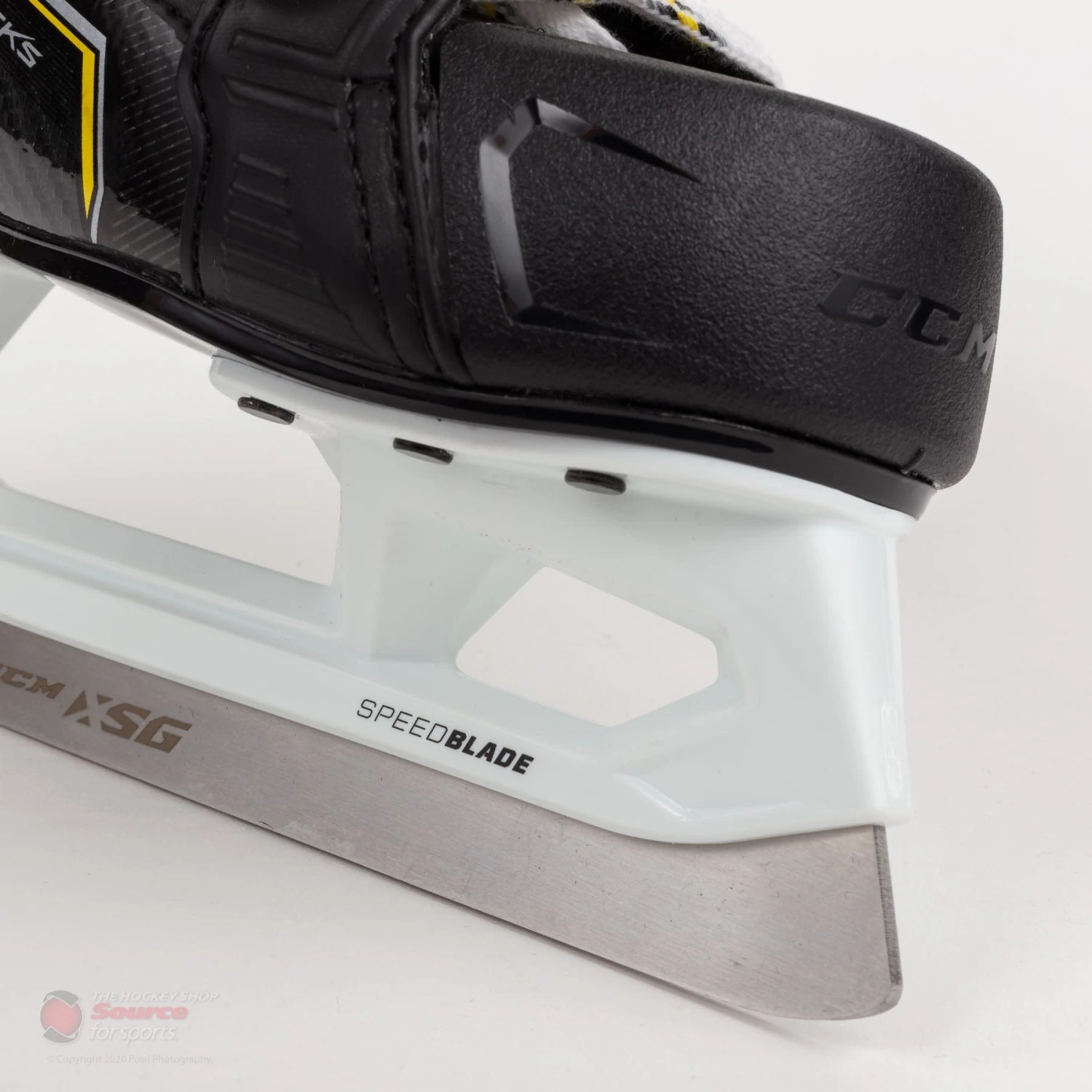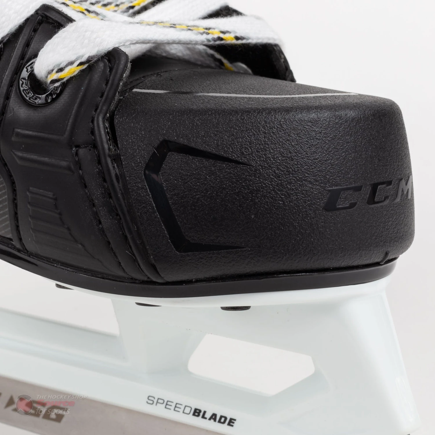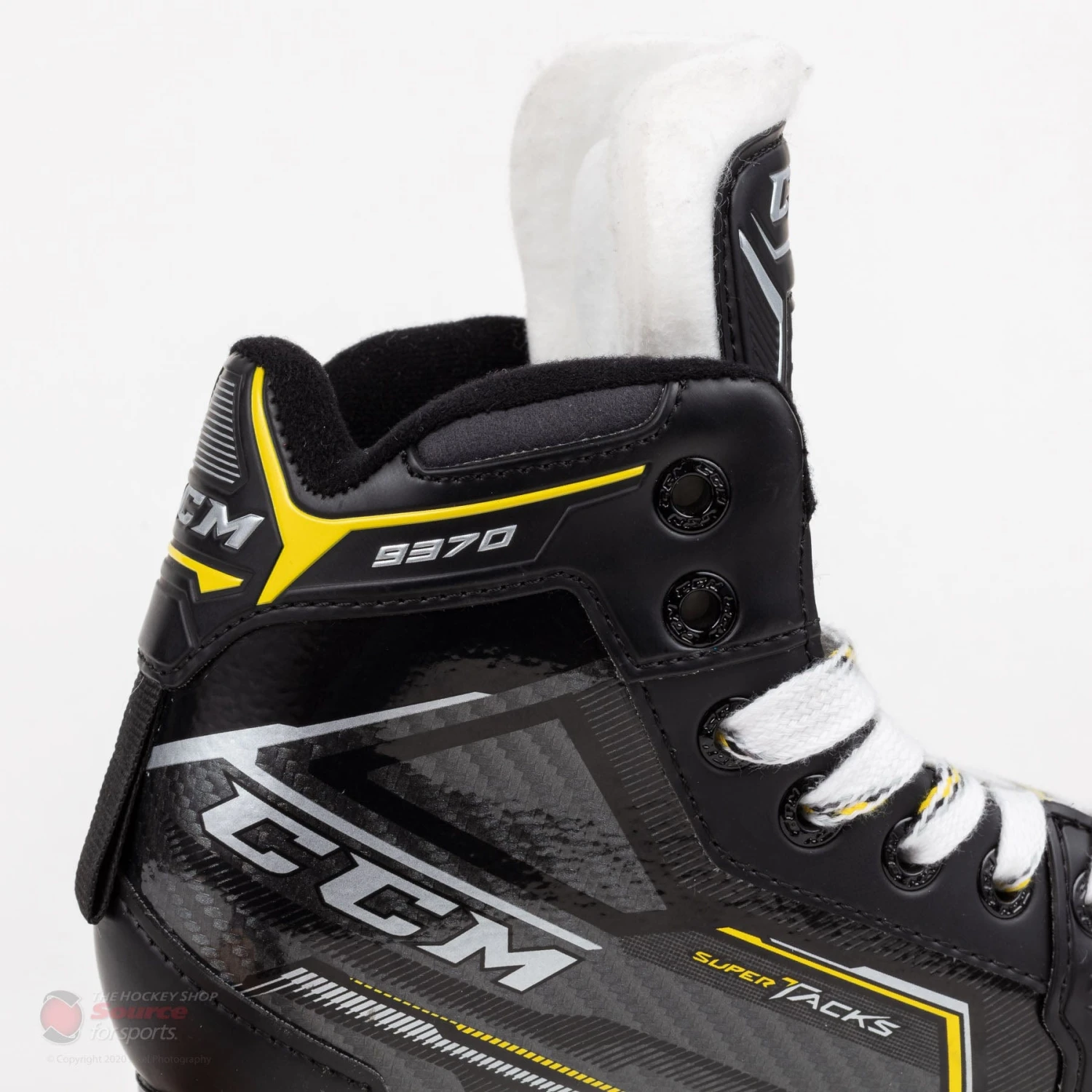 The CCM Super Tacks 9370 Goalie Skate features an anatomical, form fitting 360-degree fit around the forefoot heel and ankle. When molded, the fit of this skate becomes comfortably snug to your foot, which enhances energy transfer.