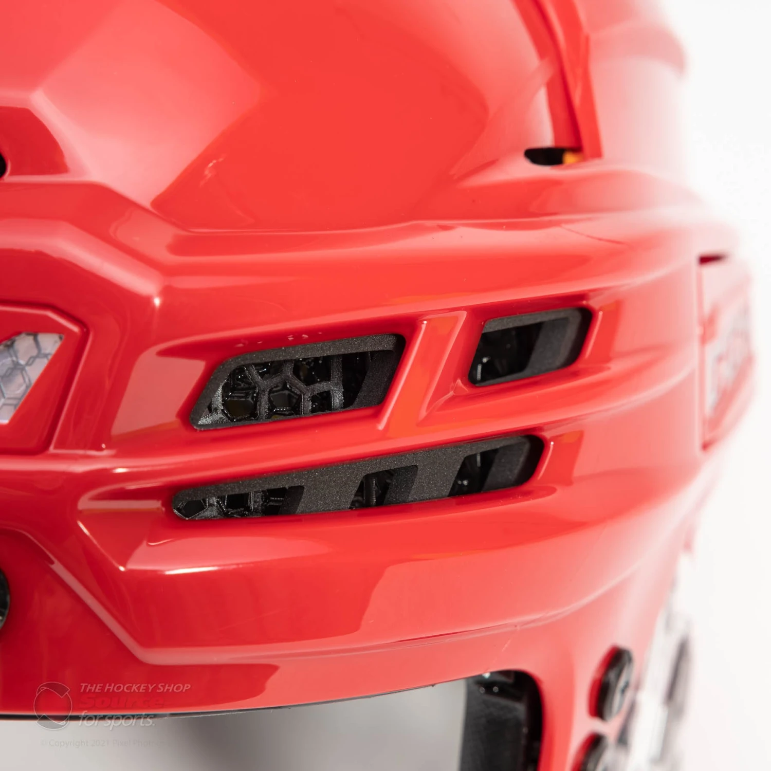 The Super Tacks X has a pro approved look with sleek aesthetics. The outer shell has a reinforced side impact frame to help with energy dispersion. While the main story with the Super Tacks X is focused on the internal protection, CCM has created another great looking helmet. Sold separately is a personalization kit allowing players to add a bit colour to the stock helmet. The kit includes front and side logos, ear loops and a chin strap.