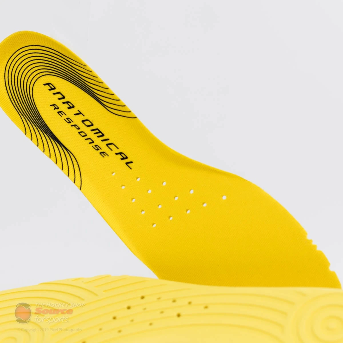 The Vector Pro’s will use a Concave Reinforced TPU outsole for a rigid design that helps with energy transfer. This is combined with an exhaust system to keep you skates light and dry. The exterior also features durability upgrades such as shiny eyelet facings and a brass top eyelet for longevity.